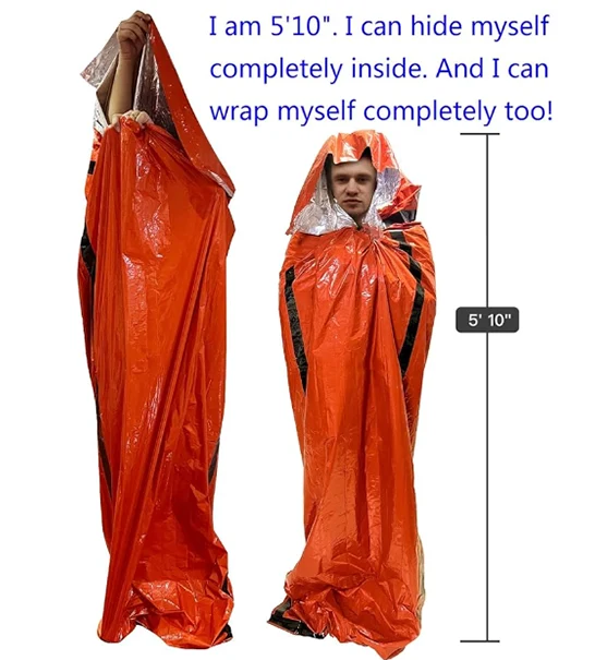 ଜରୁରୀକାଳୀନ ବଞ୍ଚାଅ ଶୋଇଥିବା ବ୍ୟାଗକୁ ସମସ୍ତ ପାଣିପାଗ, ସମସ୍ତ asons ତୁ ଏବଂ ସମସ୍ତ ପରିସ୍ଥିତି ଉପରେ ବଞ୍ଚିବାର ସମ୍ଭାବନା ବ increase ାଇପାରେ | ଏହା ସ୍ପେସ୍ ଅନୁସନ୍ଧାନ ପାଇଁ ନାସା ଦ୍ୱାରା ଡିଜାଇନ୍ ହୋଇଥିବା ନାସା ସହିତ ଡିଜାଇନ୍ ହୋଇଥିବା ମେରିଚକୁ ସ୍ଥାୟୀ ଭାବରେ ଇନସୁଲେଟିଂ ମାୟର୍ ସାମଗ୍ରୀରେ ନିର୍ମିତ | ଏହା ଶରୀରର 90% ଉତ୍ତାପକୁ ରଖେ / ପ୍ରତିଫଳିତ କରେ | ଏହା ପୁନ us ବ୍ୟବହାରେବଲ୍, ୱାଟରପ୍ରୁଫ୍ ଏବଂ ୱିଣ୍ଡ ପ୍ରୁଫ୍ |