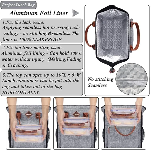 ବାହ୍ୟ ଆଲୁମିନିୟମ୍ ଫଏଲ୍ କୁଲର୍ ବ୍ୟାଗ୍ ଲାଇନ୍ 100% ଲିକ୍ ପ୍ରମାଣ, ସଫା କରିବା ସହଜ ଏବଂ ସହଜରେ ତରଳି ଯିବ | ନାଇଲନ୍ କପଡ଼ାରେ ଜଳ-ପ୍ରତିରୋଧୀ ଏବଂ ଶୀର୍ଷ ଜିପର୍ ଜଳପ୍ରବାହ ଅଟେ | ଜଳପ୍ରବାହର କାର୍ଯ୍ୟ ଏବଂ ଏହି ମଧ୍ୟାହ୍ନ ଭୋଜନ ବ୍ୟାଗର ଇନସୁଲେସନ୍ ଉତ୍କୃଷ୍ଟ |