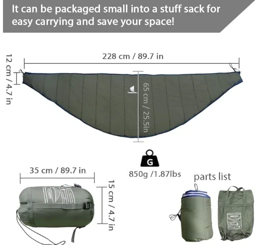 ଭ୍ରମଣ କ୍ୟାମ୍ପିଂ ହାମକ୍, ଏକ ଶୋଇଥିବା ବ୍ୟାଗର ଆରାମ ଏବଂ ଶୀତଳ ପାଣିପାଗର ଇନସୁଲେଟିଂ କରନ୍ତୁ, ଯାହା ଶତାବ୍ଦୀ ପାଣିର ବାହ୍ୟ ଉତ୍ପାଦ ସହିତ ଆପଣଙ୍କୁ ଫିଟ୍ କରିବା ସହଜ କରନ୍ତୁ | । କ୍ୟାମ୍ପିଂ, ବ୍ୟାକପ୍ୟାକିଂ, ଶିକାର, ବାହ୍ୟ କାର୍ଯ୍ୟକଳାପ, ପର୍ବତାରୋହୀ, ବଣ୍ଟନ କରିବା |
